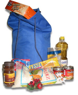 1 Aceite patrona 500 ml. 1 Bolsa de Arroz 900 grs 1 Bolsa de Frijol 900 grs 1 Bolsa de Azúcar 900 grs 1 Café 50 grs. 1 Pastas para sopa de 200 grs. 1 Galletas marias 1 chocolate en polvo 400 grs Empaque Bolsa Lona