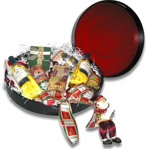 2 Vinos Blancos 1 Galletas de Arroz 1 Chocolate Navideño 2 Mejillones en Escabeche 1 Pulpo al Ajillo 1 Ostión Ahumado 1 Salmón 1 Aceituna Rellena de Anchoas Charola de madera